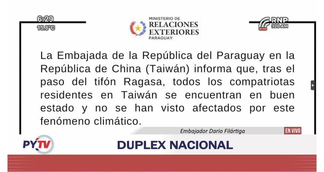 Los estudiantes paraguayos se encuentran bien, reportó este jueves el embajador de nuestro país en la República de China (Taiwán), Darío Filártiga, al ser consultado sobre la situación de los compatriotas luego del tifón que azotó la zona.