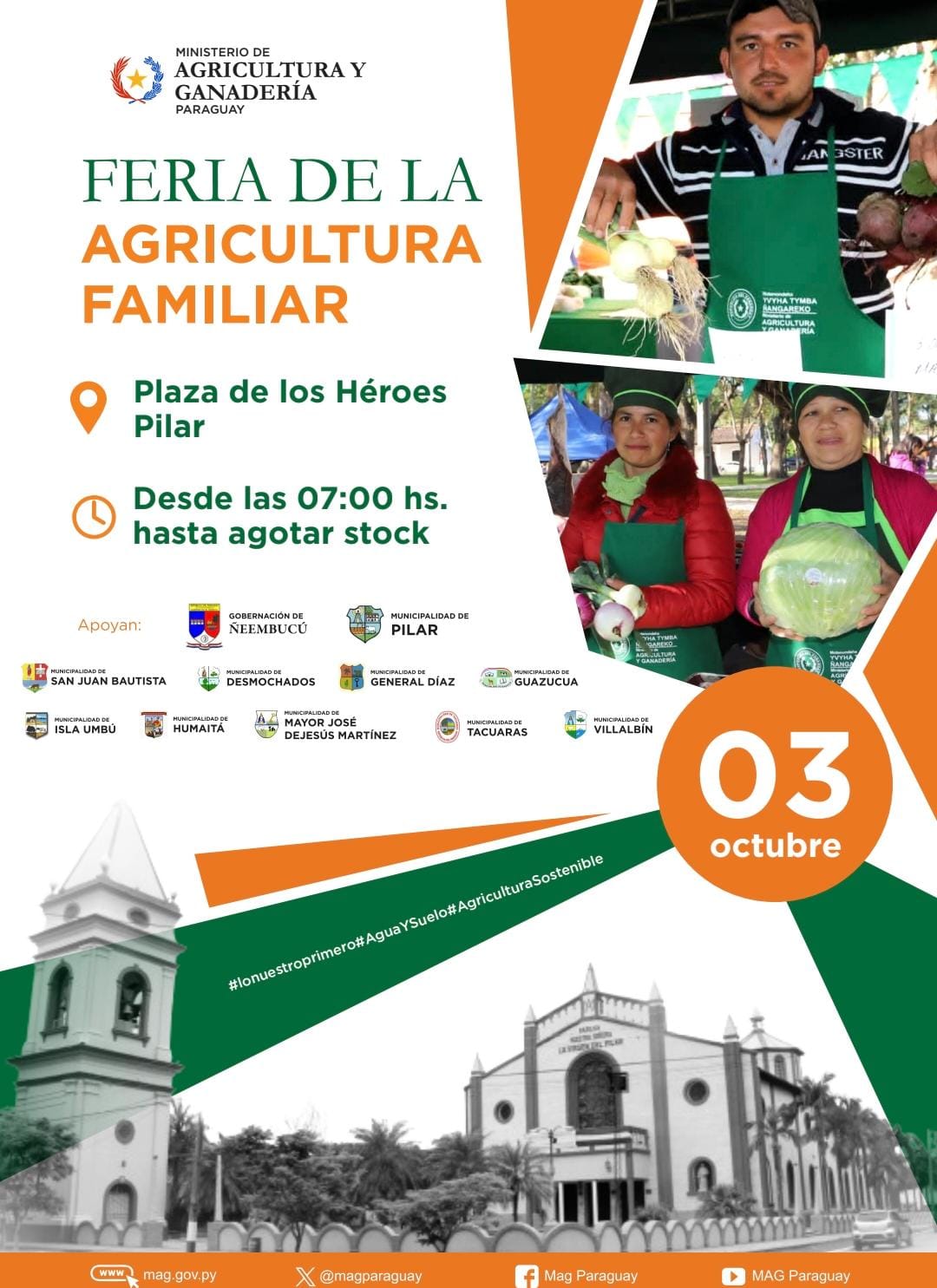La Feria de la Agricultura Familiar Campesina, se desarrollará mañana viernes 3 de octubre en la Plaza de los Héroes de Pilar, informó este jueves la coordinadora del evento, Carolín Leguizamón.