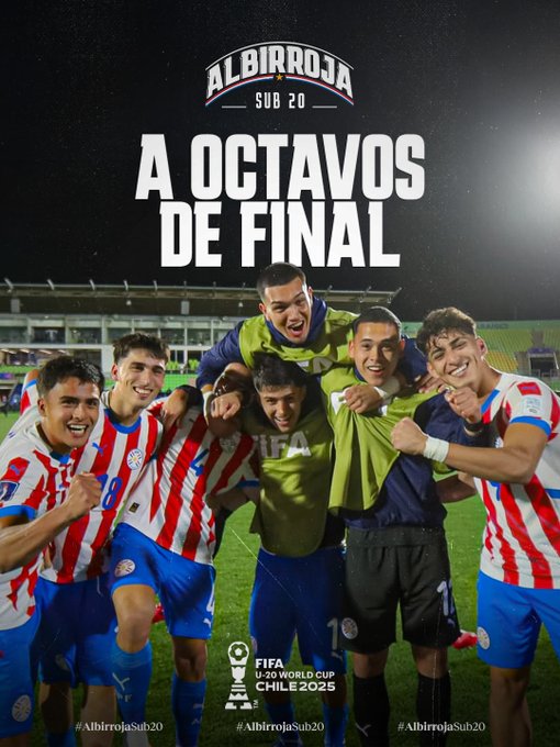 La Albirrojita se instaló en los octavos de final de la Copa Mundial Sub-20 de la FIFA, tras finalizar como segundo en el Grupo. La selección guaraní no pudo con la de Ucrania, que tras perder 2-1, le sirvió la victoria 3-2 ante Panamá y la igualdad a cero frente a Corea del Sur.