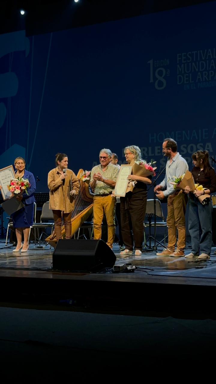 En reconocimiento a la destacada trayectoria como gestoras culturales y a su labor en la consolidación de este encuentro internacional que celebra la música del arpa como símbolo de identidad paraguaya, Marlene Sosa Lugo y Ana Scappini Ricciardi, recibieron el Premio Óscar Trinidad por parte de la Secretaría Nacional de Cultura.