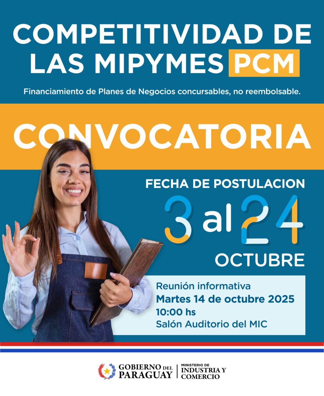 El Ministerio de Industria y Comercio abrió la convocatoria de los fondos concursables para micro, pequeñas y medianas empresas, informó este lunes la directora general de Financiación e Inversión para Mipymes del MIC, Tania Riline.
