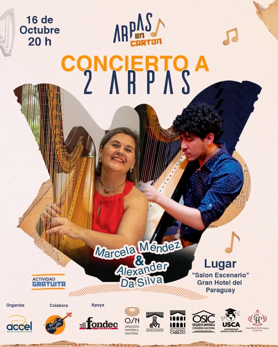 El próximo jueves 16 de octubre a las 20:00 h en el Salón Escenario – Gran Hotel del Paraguay, se realizará el Concierto a 2 arpas, invitó este lunes el arpista paraguayo, Alexander Da Silva.