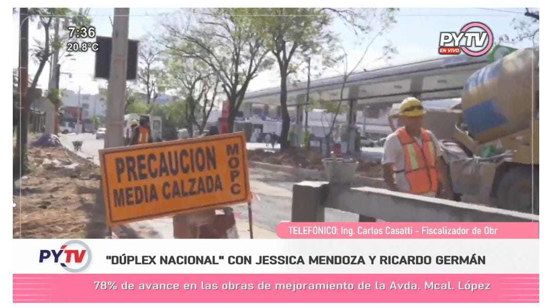 Las obras en la avenida Mariscal López tienen un 78% de avance, destacó este miércoles el fiscalizador del Ministerio de Obras Públicas y Comunicaciones, ingeniero Carlos Casati.