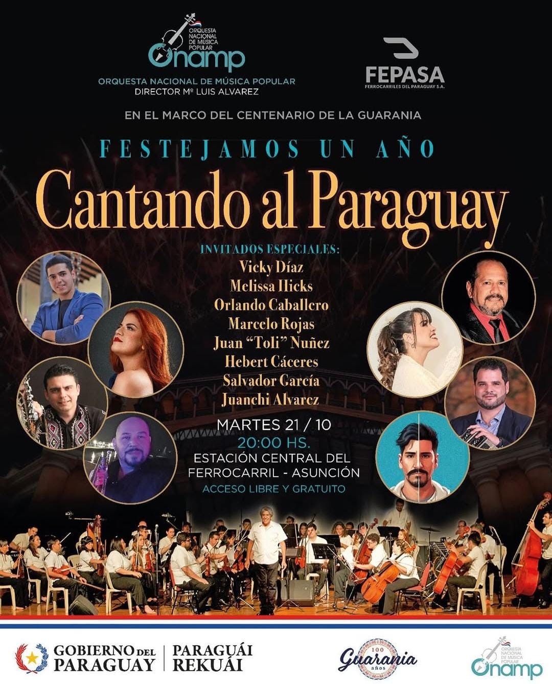 Significó que el evento de esta noche se denomina «Un Año Cantando al Paraguay». Añadió que se iniciará de manera puntual a las 20:00 horas. También, recordó que se conmemora el aniversario de la primera salida del ferrocarril, bajo la presidencia de Don Carlos Antonio López, el 21 de octubre de 1861.