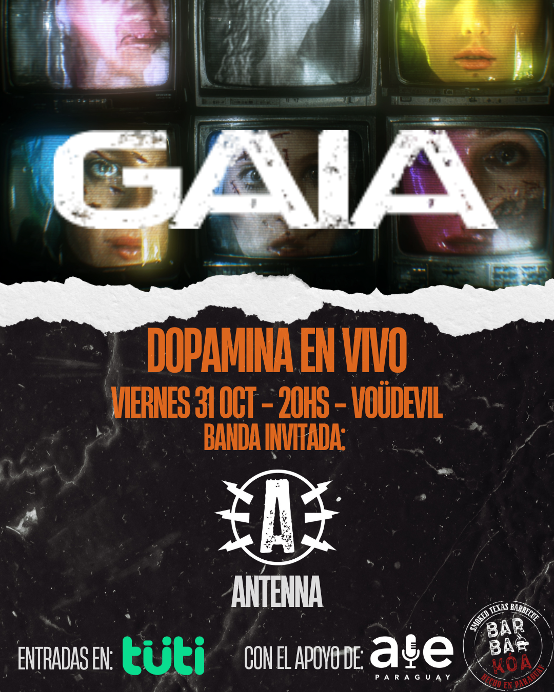 La banda paraguaya de rock GAIA, presentará en vivo las canciones de su nuevo trabajo discográfico, denominado «Dopamina» el jueves 31 de octubre en Vöudevil, en un único show que descargará toda la energía.