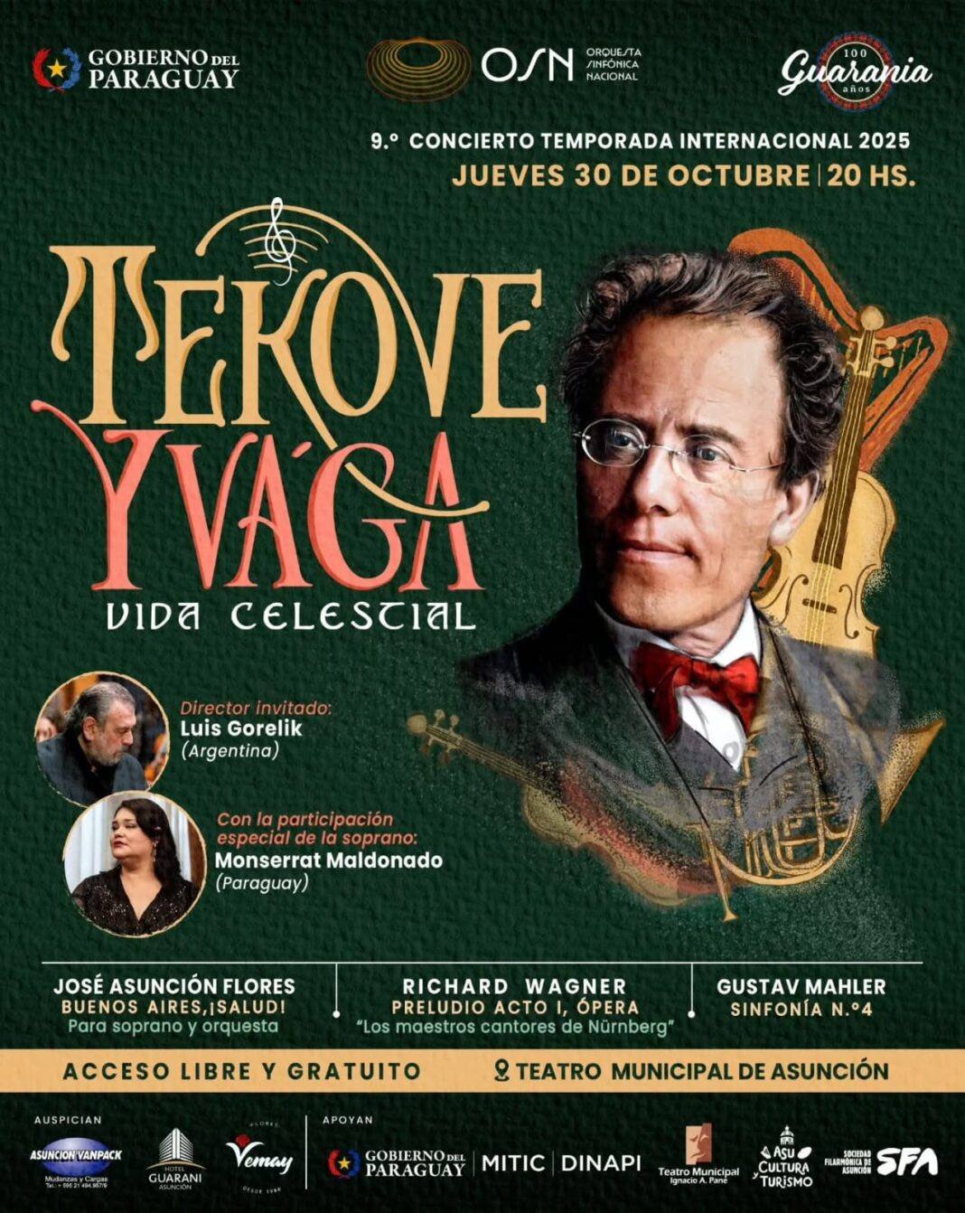 La Orquesta Sinfónica Nacional  ofrecerá su noveno concierto de la Temporada Internacional 2025, titulado Tekove yvága (Vida Celestial). Se trata de una propuesta inspirada en la poética y espiritualidad de la Cuarta Sinfonía de Gustav Mahler-