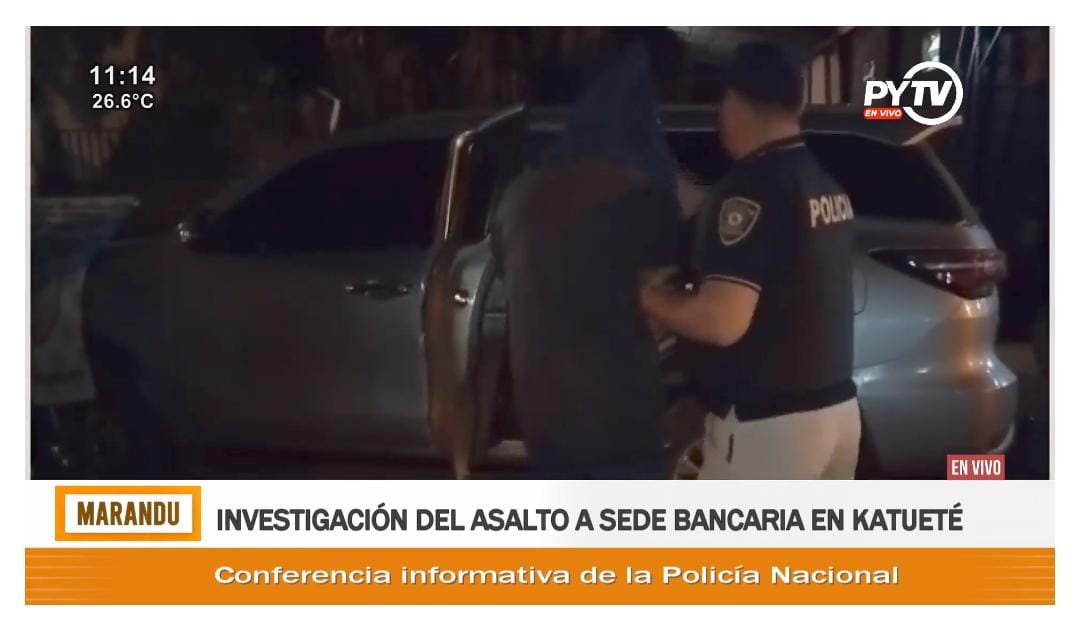 Tres hombres identificados como Diego Hernán Portillo Sugasti, Antolín Algarín Domínguez y Hernán David Núñez Vera, todos mayores de edad, fueron detenidos durante una serie de allanamientos realizados en los departamentos de Alto Paraná y Caaguazú, en el marco de la investigación por un hecho de robo agravado a una entidad bancaria ocurrido en Katueté del Departamento de Canindeyú, informó este miércoles el director de Hechos Punibles Regional Canindeyú, comisario principal Javier Flores.