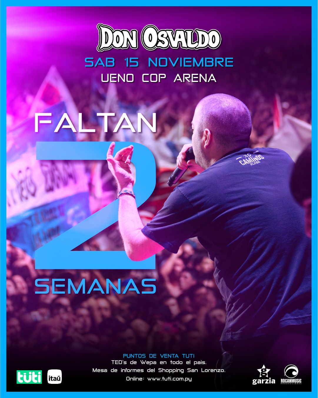 La banda argentina de rock, Don Osvaldo presentará sus éxitos el próximo sábado 15 de noviembre en el Cop Arena del Comité Olímpico Paraguayo, desde las 21:30 horas.