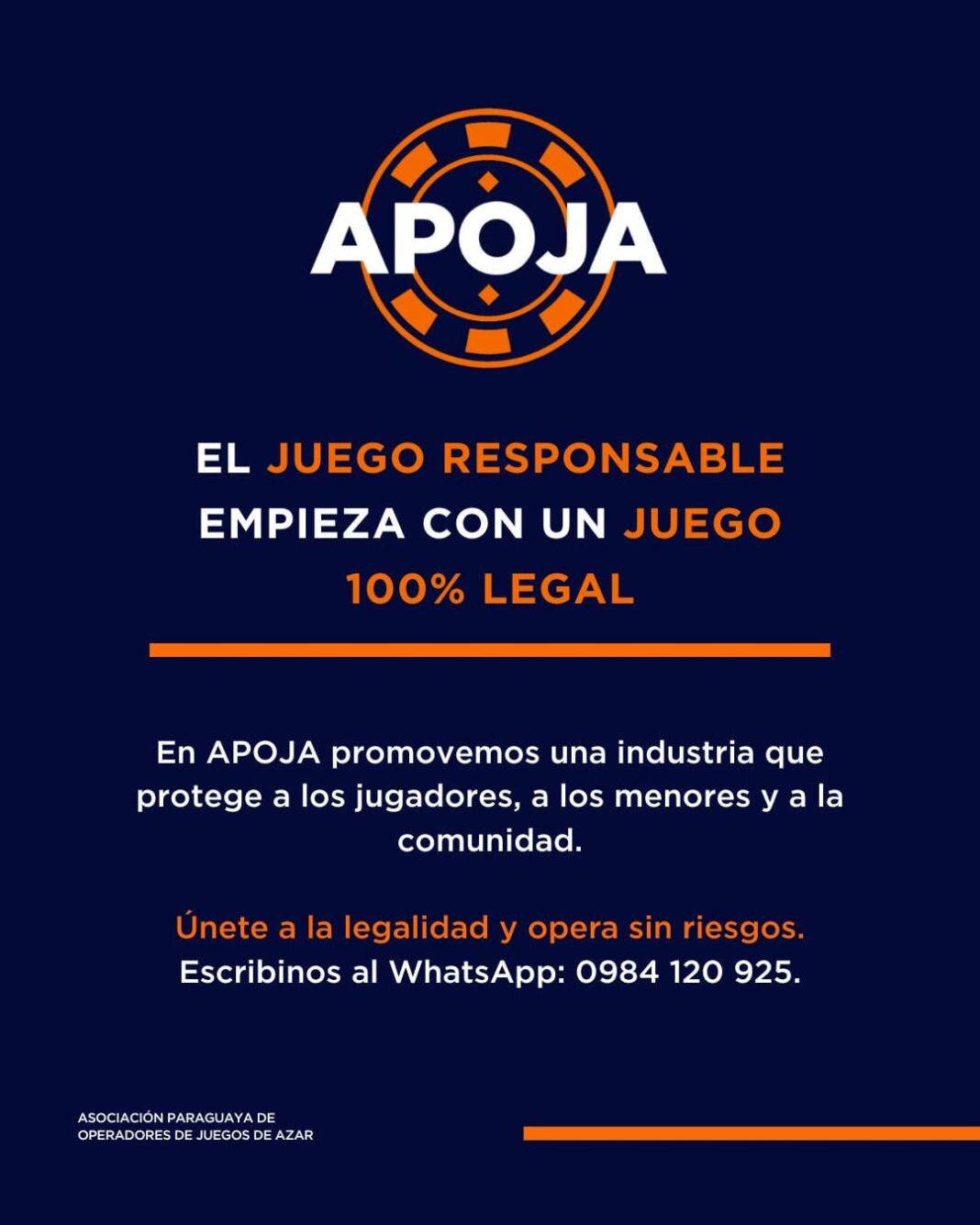 La Asociación Paraguaya de Operadores de Juegos (APOJA) representa al sector privado y colabora con la Comisión Nacional de Juegos de Azar (CONAJZAR), incluyendo un portal de denuncias ciudadanas para combatir la proliferación y normalización del juego ilegal.