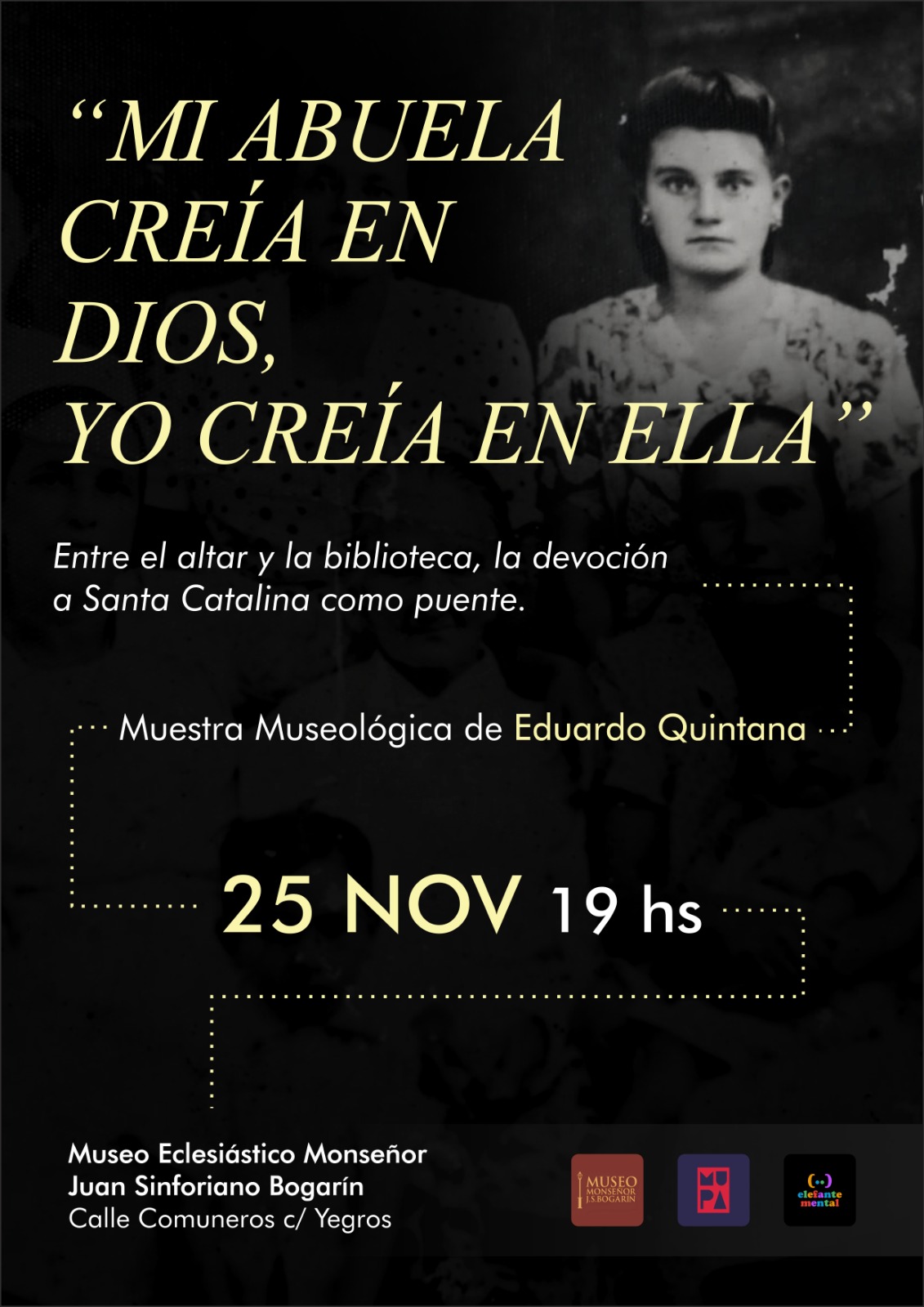La inauguración de la muestra museológica “Mi abuela creía en Dios, yo creía en ella», será el próximo martes 25 de noviembre de 2025, a las 19 horas, informó este jueves Eduardo Quintana.