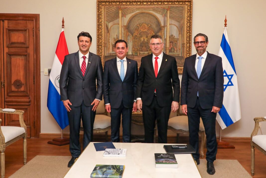 El ministro de Relaciones Exteriores, Rubén Ramírez Lezcano, recibió hoy a su homólogo del Estado de Israel, Gideon Sa’ar, quien realiza una visita oficial al país. Durante el encuentro, ambas autoridades coincidieron en la importancia de seguir ampliando la cooperación en diversas áreas y de aprovechar plenamente el potencial de las relaciones económicas y comerciales entre ambos países.