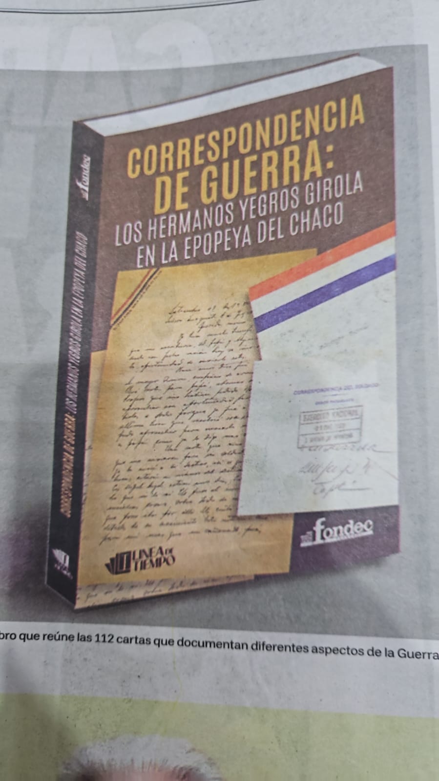 En un acto a realizarse mañana martes 25 de noviembre a las 19:00, en el Salón Auditorio «Mariscal José Félix Estigarribia» del Ministerio de Defensa Nacional, se presentará el libro Correspondencia de guerra: los hermanos Yegros Girola en la epopeya del Chaco, informó este lunes el embajador e historiador, Ricardo Scavone.
