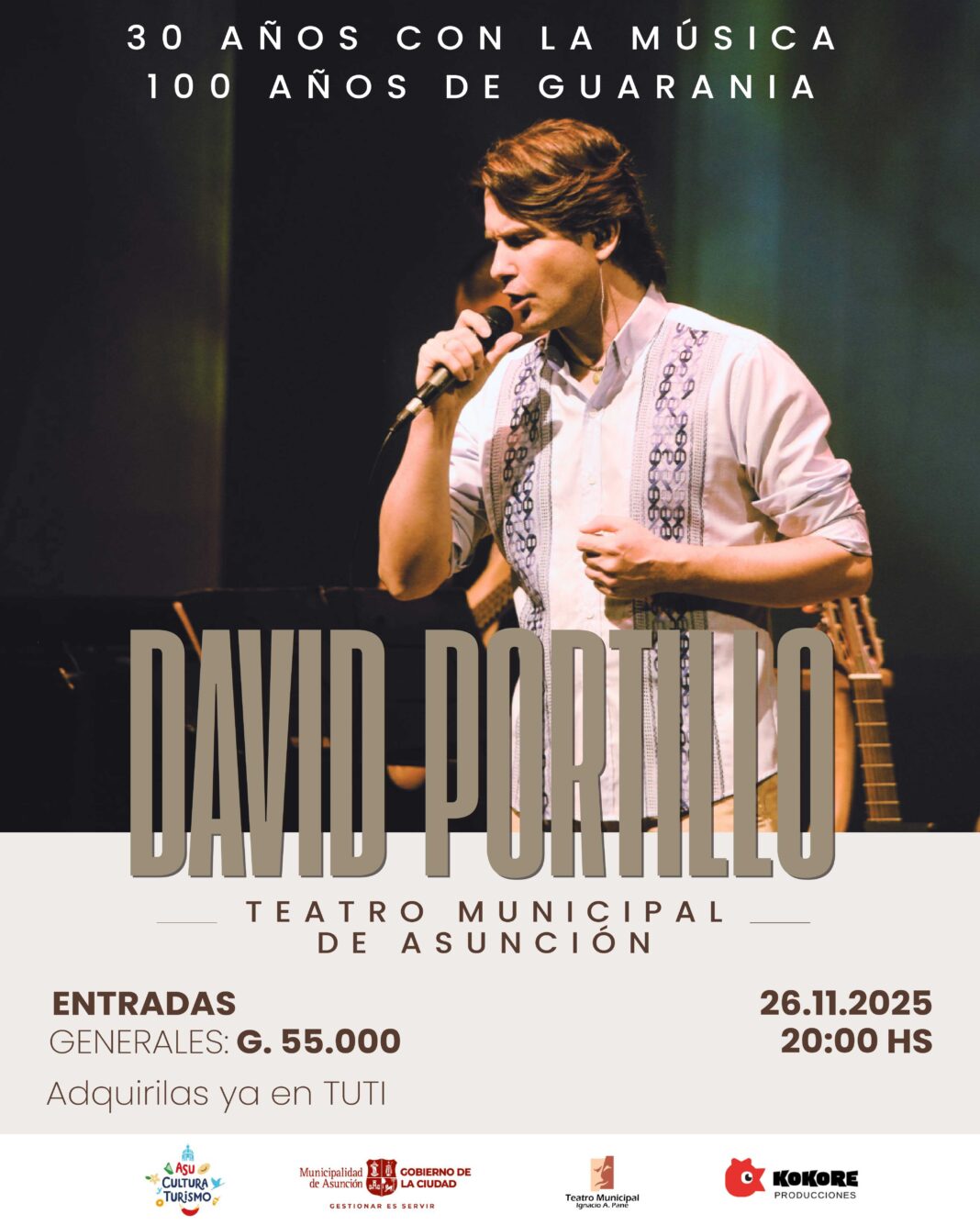 Este miércoles 26 de noviembre en el Teatro Municipal de Asunción, David Portillo celebra tres décadas de trayectoria con un concierto especial acompañado de excepcionales músicos, además del cierre de una gira dedicada al alma musical del Paraguay.