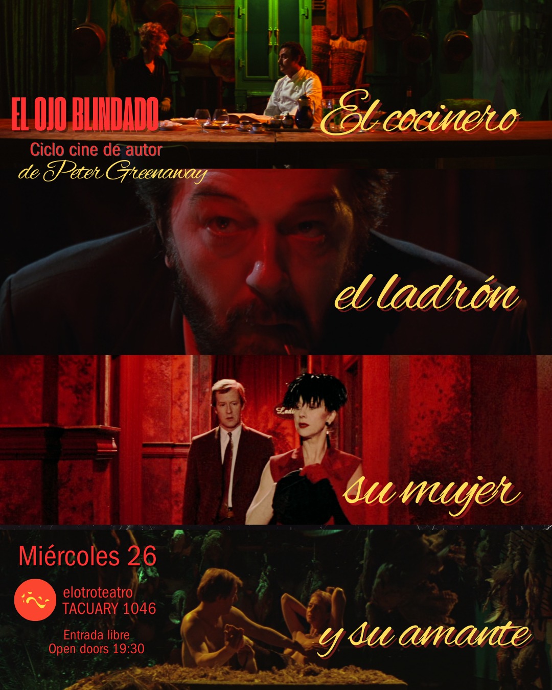 El ciclo de cine El Ojo Blindado que se realiza en El Otro Teatro, sito en Tacuary 1046 casi Manuel Ortíz Guerrero de Asunción, finaliza este miércoles a las 20:00 horas, con la proyección del la película, El Cocinero, El Ladrón, Su Mujer y Su Amante, del director británico Peter Greenaway.