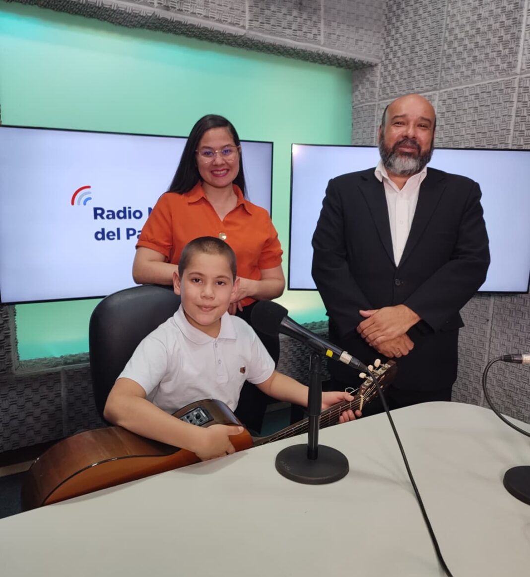«A los 9 años empecé, hace un año que estoy en el mundo de la música», mencionó durante su visita a los estudios de Radio Nacional del Paraguay, el niño poeta Osmar Rivas.