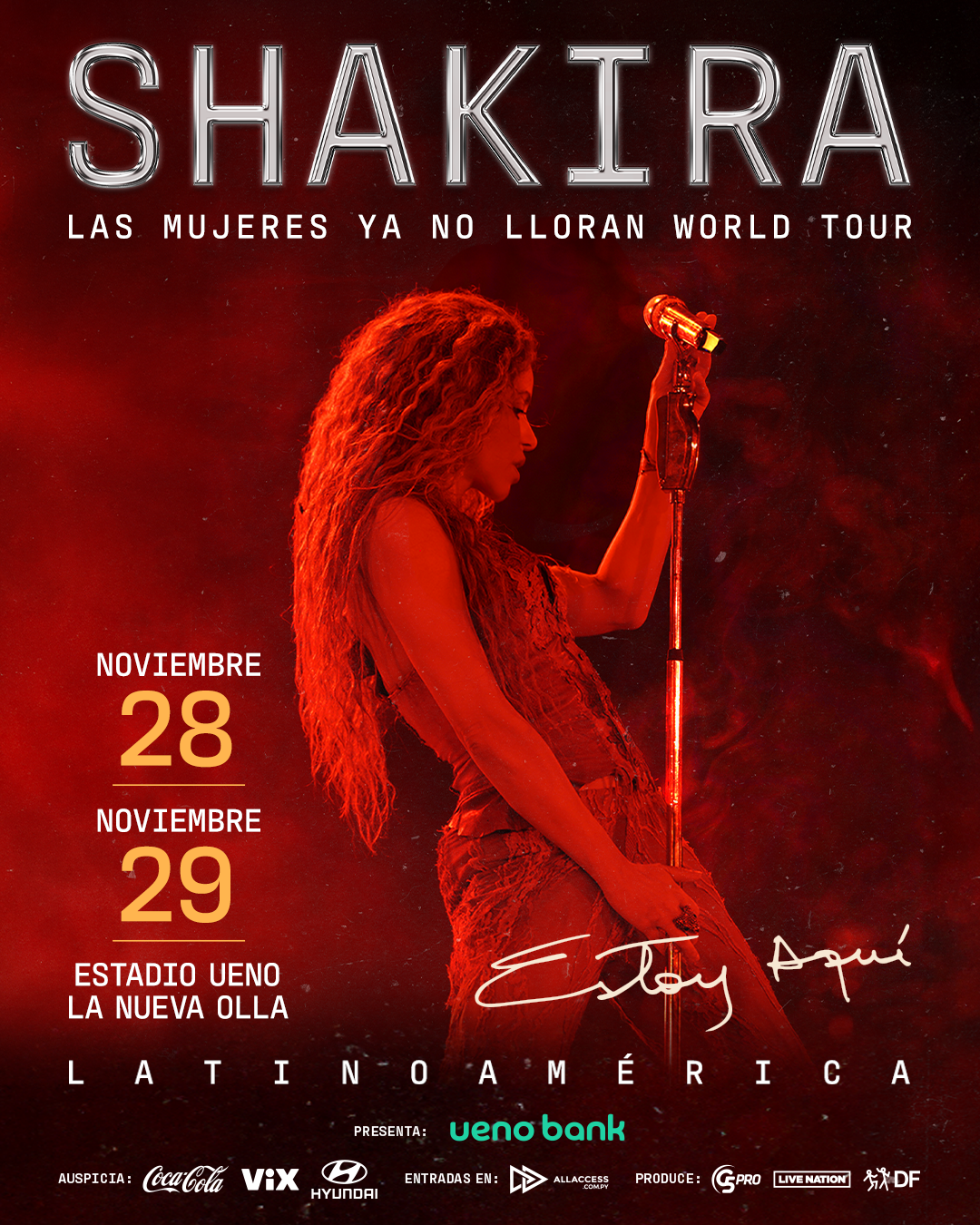 Las ÚLTIMAS ENTRADAS se encuentran disponibles a través de https://www.allaccess.com.py/event/shakira y ya puede ser adquiridas con todos los medios de pago, tanto dentro como fuera del país.