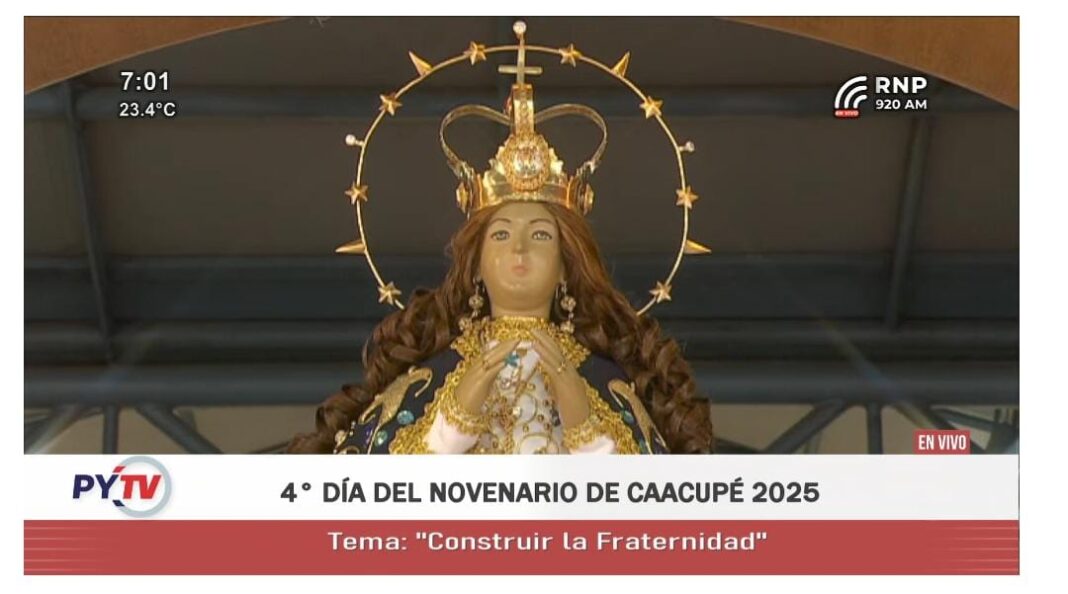 El novenario a la Virgen de Caacupé es transmitido por la 920 AM y el canal de aire 15.2 de Radio Nacional del Paraguay, a las 07:00 horas.