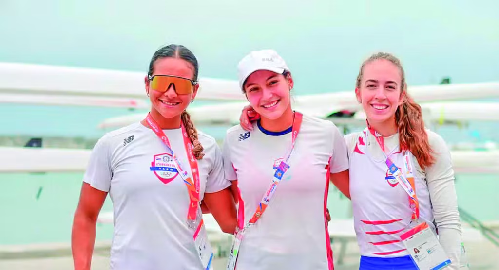 Las jóvenes remeras guaraníes Fiorella Rodríguez y Agustina López conquistaron el primer oro paraguayo en la prueba de dos sin timonel (W2-), alcanzado 15 preseas hasta el momento.