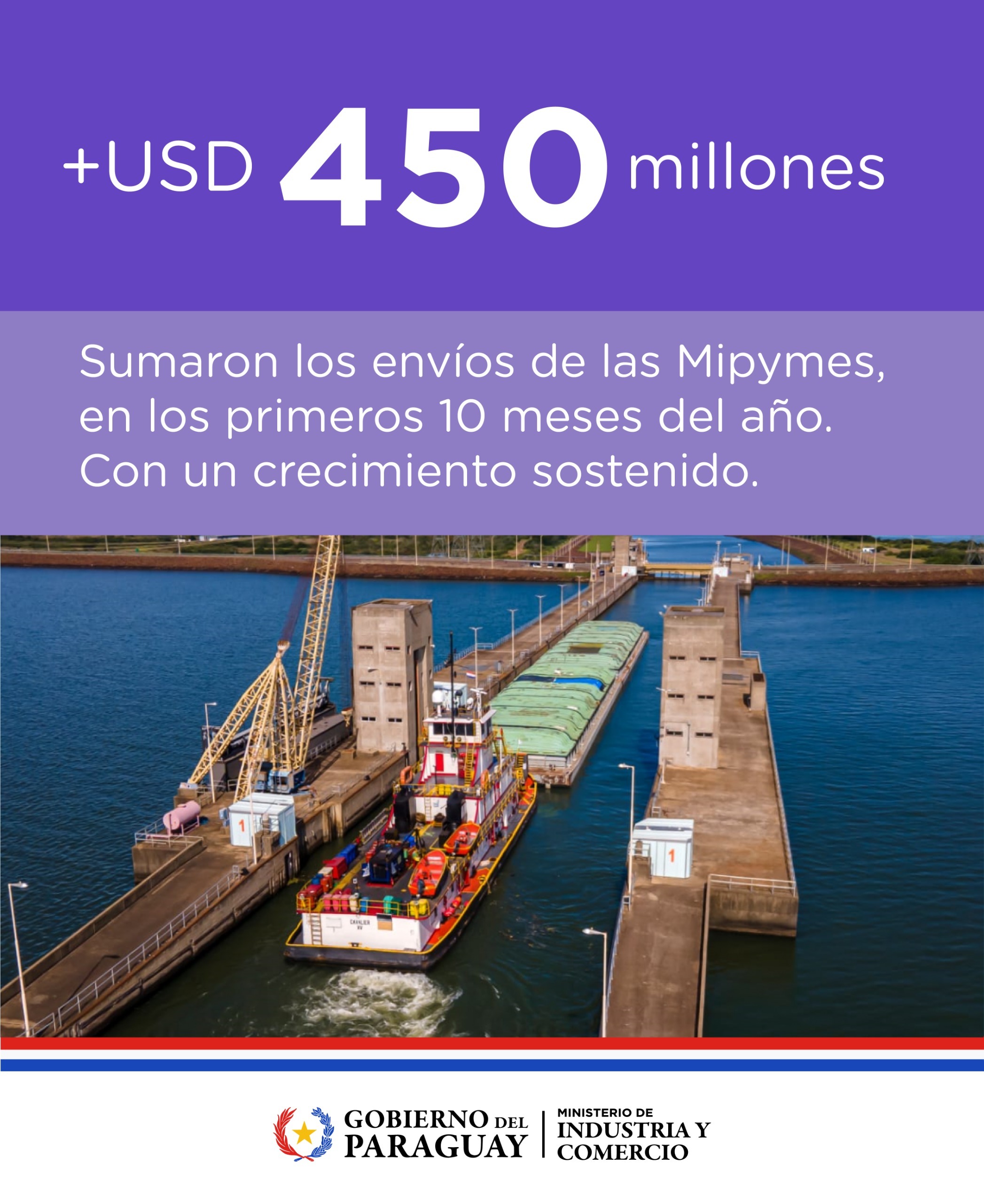Al cierre de octubre, las exportaciones superaron los USD 450 millones, marcando un crecimiento sostenido, resaltó este miércoles la directora general de Información e Internacionalización de Mipymes del Ministerio de Industria y Comercio, Romina Da Re.