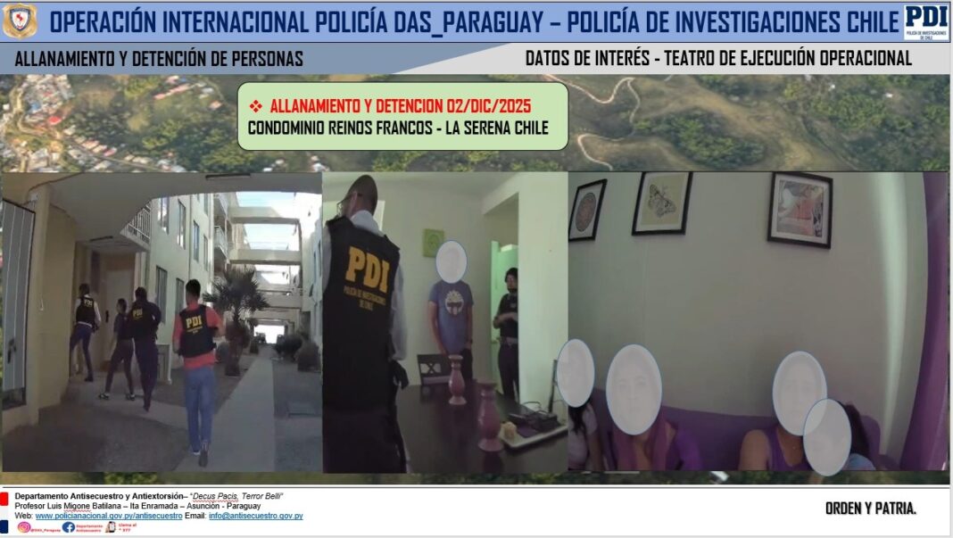 Fueron detenidos los presuntos líderes de la red de explotación, una ciudadana paraguaya y un venezolano, siendo la mujer la encargada de captar víctimas en Paraguay con promesas de trabajos lícitos.