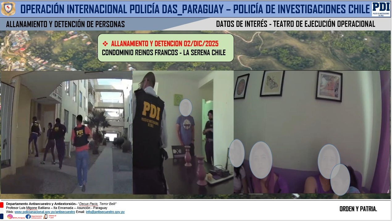 El Director interino de la Dirección contra el Secuestro y Terrorismo, Comisario Principal Juan Pereira, confirmó la rápida recuperación de una joven paraguaya en Chile, en el marco de la Operación Internacional Serena.