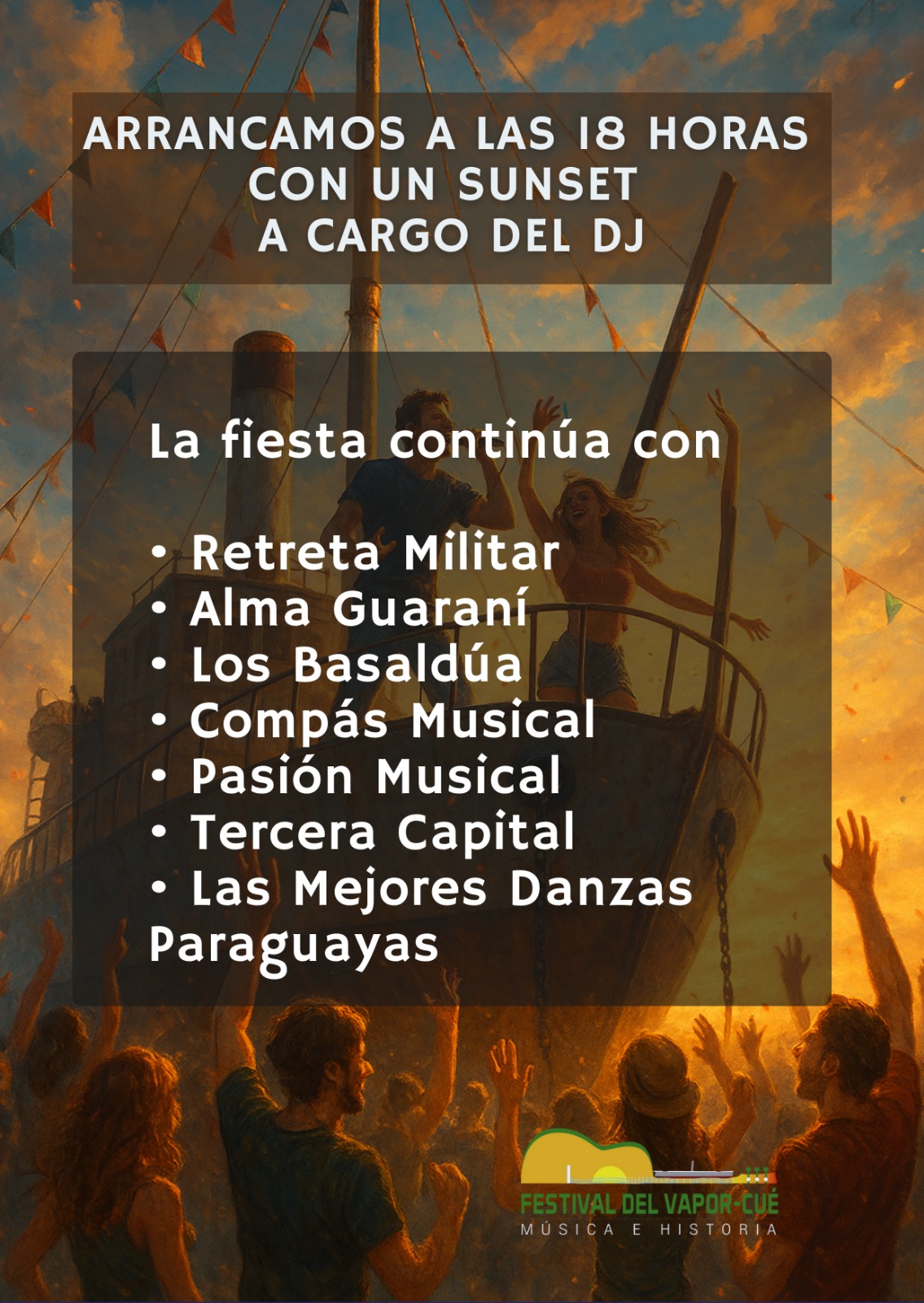Durante la entrevista en Radio Nacional del Paraguay, mencionó que el evento comenzará a las 18:00 con un sunset a cargo del Dj paraguayo. Posteriormente la jornada continuará con la actuación de una banda militar, que tendrá a su cargo la retreta.