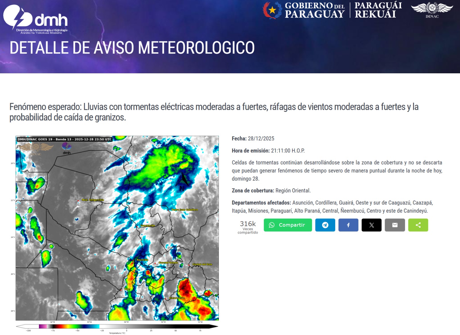 Manifestó que en el departamento del Alto Paraná ya se tiene un acumulado de lluvias de más de 100 mm. Finalmente, dijo que las familias paraguayas deben prepararse para un año nuevo lluvioso.