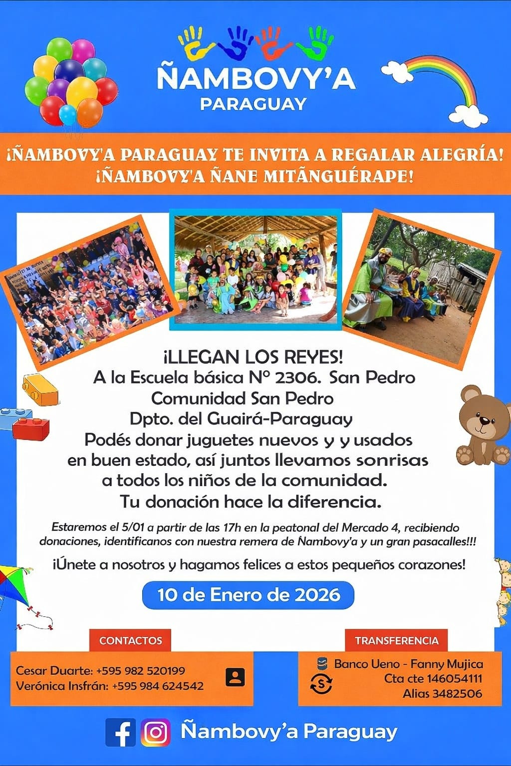 Ñambovy’a Paraguay invita a regalar alegría por el Día de los Reyes