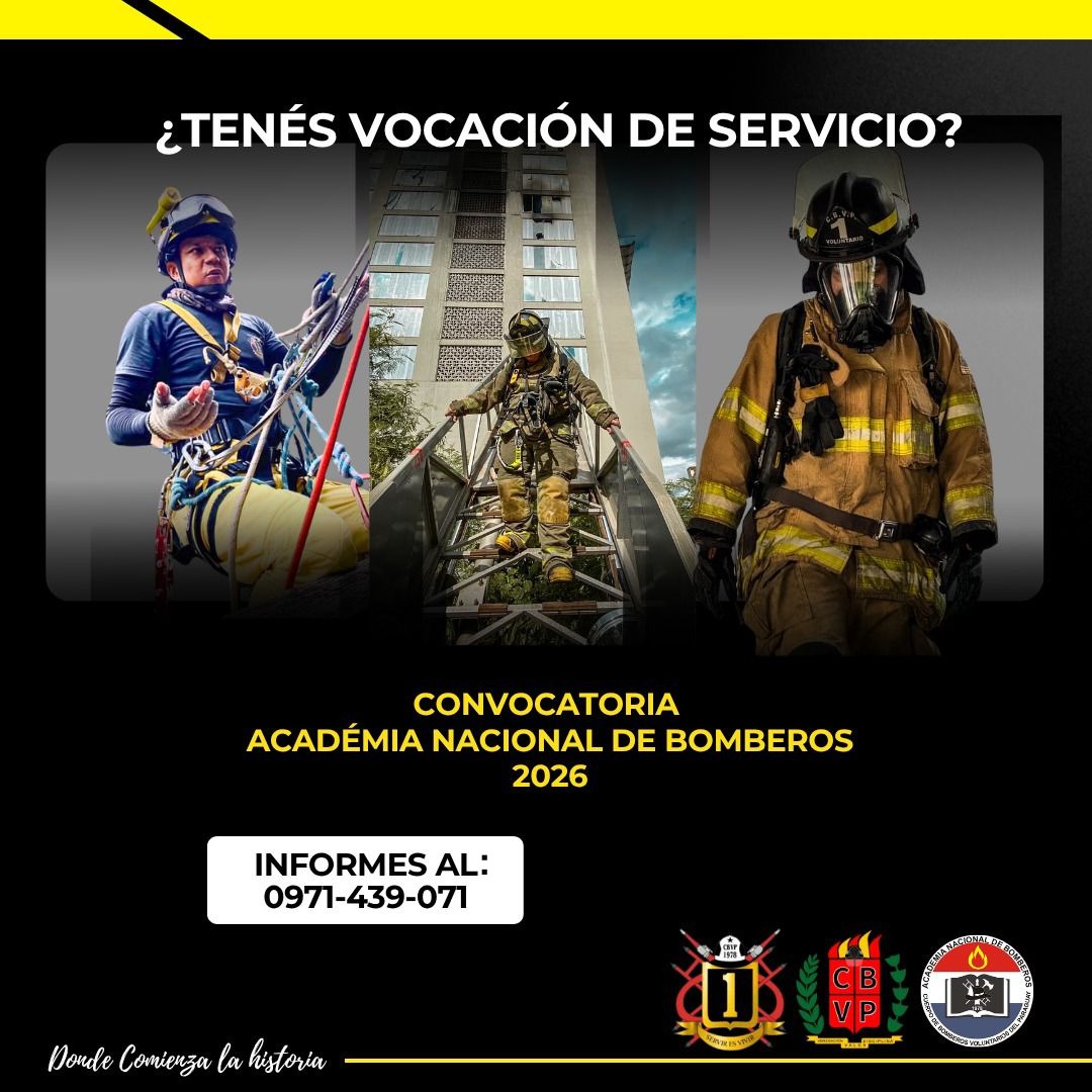 La Primera Compañía del Cuerpo de Bomberos Voluntarios del Paraguay – Bomba Asunción (K1) informa a la ciudadanía la apertura oficial de la convocatoria para nuevos aspirantes a bomberos voluntarios, dirigida a personas con vocación de servicio, compromiso y espíritu solidario, informó este martes el teniente Enzo Ortigoza de la Primera Compañía «Bomba Asunción».