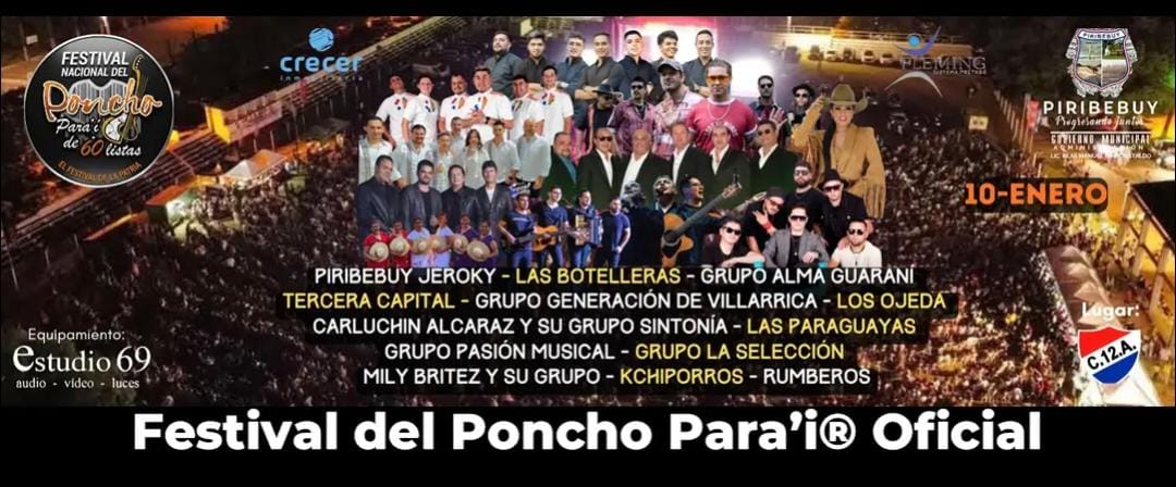 La edición número 24 del gran festival en el Club 12 de Agosto a partir de las 21:00 horas, informó este miércoles el intendente de Piribebuy, Blas Manuel Gini.
