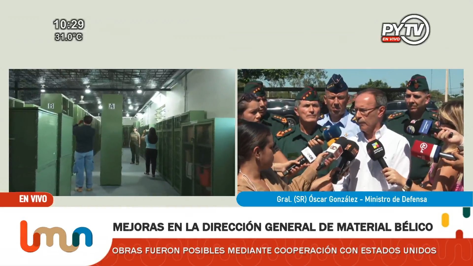 El presidente de la República y Comandante en Jefe de las Fuerzas Armadas de la Nación, Santiago Peña, inauguró de las mejoras edilicias en el Depósito de Evidencias Judiciales de la Dirección General de Material Bélico (DIGEMABEL). También estuvo presente el ministro de Defensa Nacional Gral Ej (R) Óscar González, además del Comandante de las Fuerzas Militares Gral Ej César Moreno, los Comandantes de las Fuerzas Singulares y el Comando Logístico.