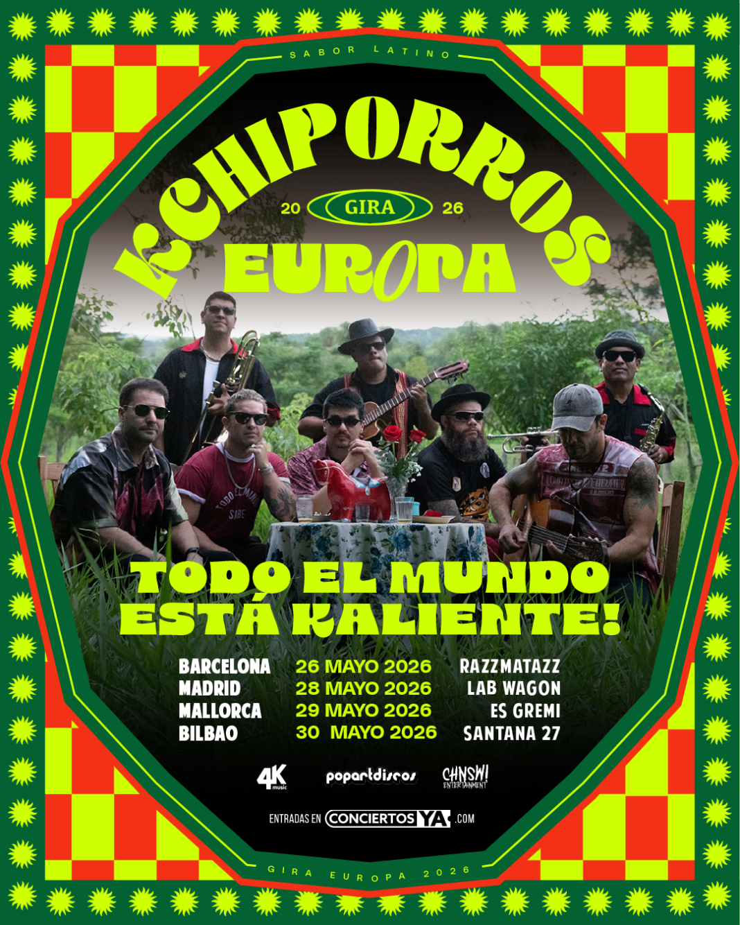 Kchiporros regresa al Viejo Continente con una gira por España como primer destino confirmado. El tour servirá como presentación oficial de su nuevo disco, ¡Todo el mundo está kaliente!, un material que reafirma el espíritu latino y explosivo que caracteriza al grupo.