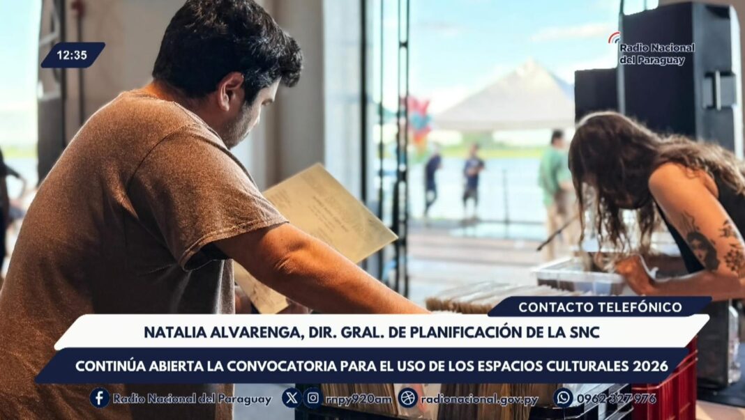 La Secretaría Nacional de Cultura recuerda que se encuentra abierta, hasta el 28 de febrero, la convocatoria para el uso de Espacios Culturales, mencionó este martes la directora general de Planificación, Innovación y Desarrollo Cultural de la SNC, Natalia Alvarenga.