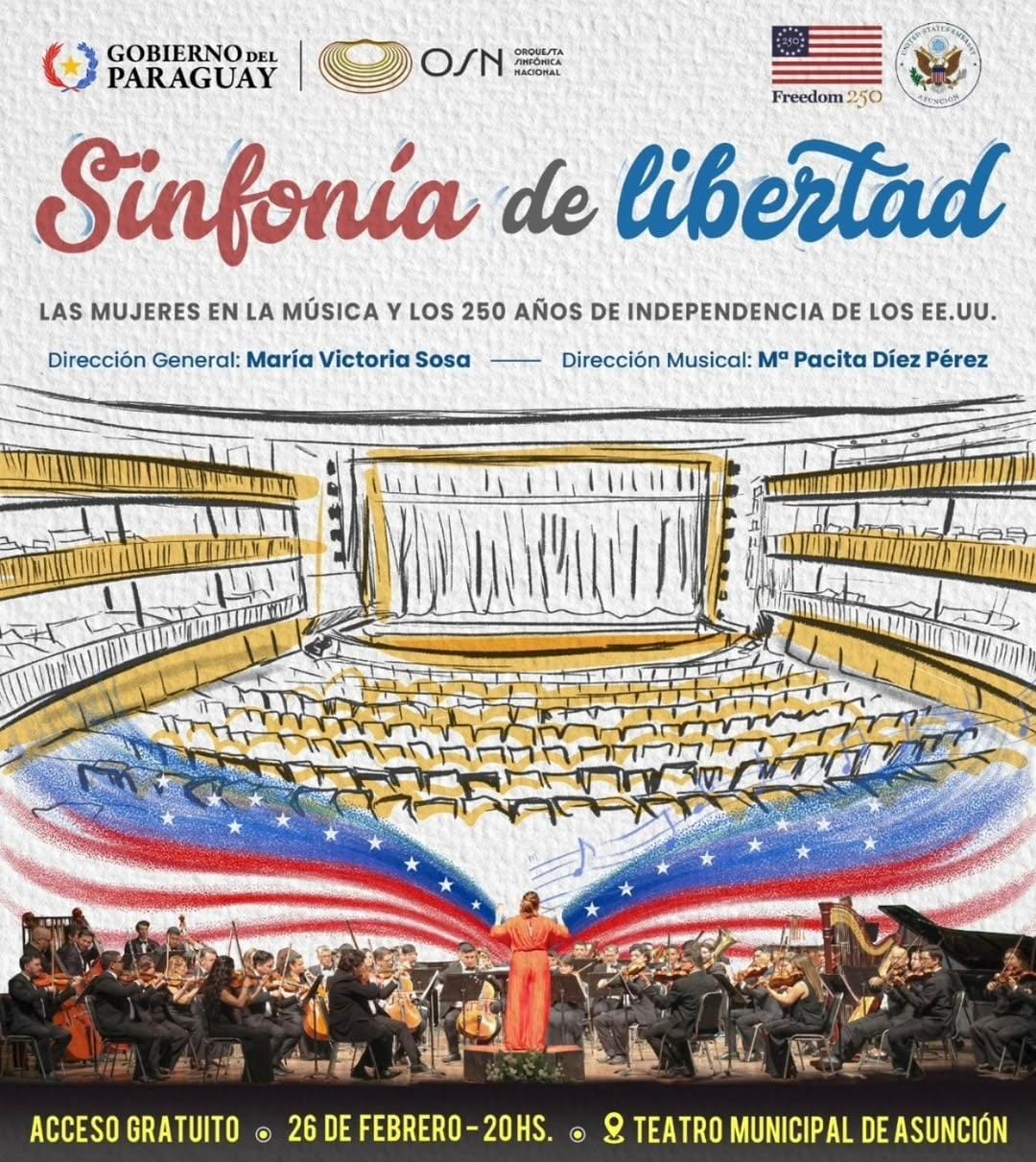 La Orquesta Sinfónica Nacional del Paraguay (OSN), junto con la Embajada de los Estados Unidos en Asunción, presentan “Sinfonía de libertad: las mujeres en la música y los 250 años de la Independencia de los EE.UU”, informó la directora de la OSN, María Victoria Sosa.