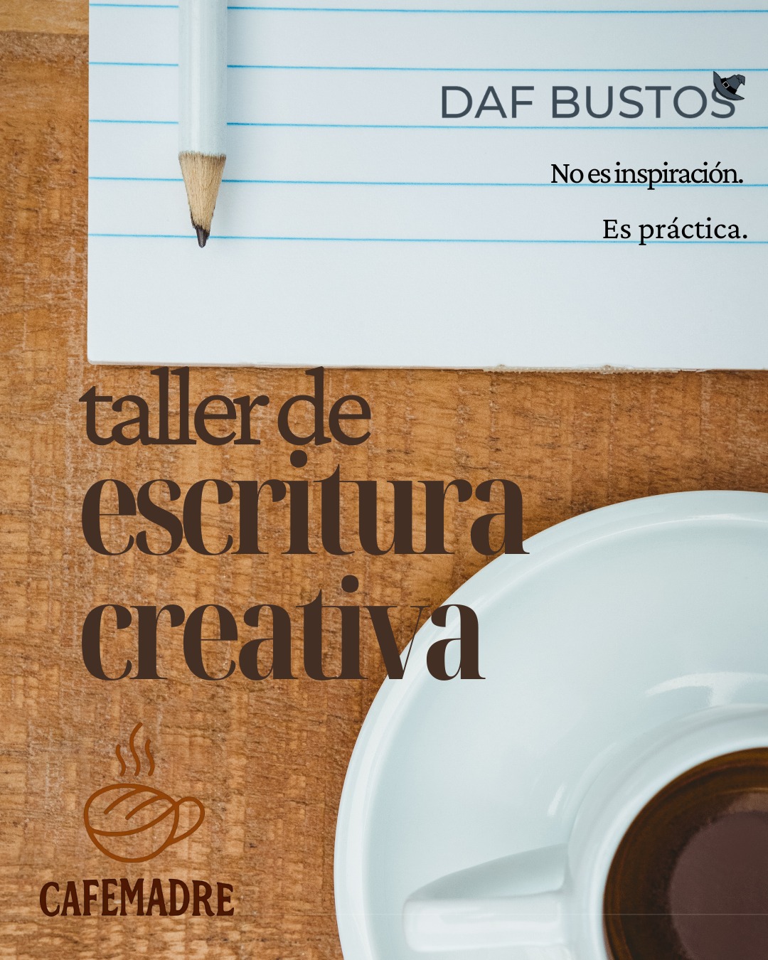 El taller de Escritura Creativa inicia el sábado 7 de marzo, en el horario de 9:00 a 11:00 todos los sábados del mes, en el Café Madre, sito en las inmediaciones de San Antonio 2300 c/ Corpus Cristi, de Fernando de la Mora, invitó este viernes la licenciada en letras, Dafne Bustos.