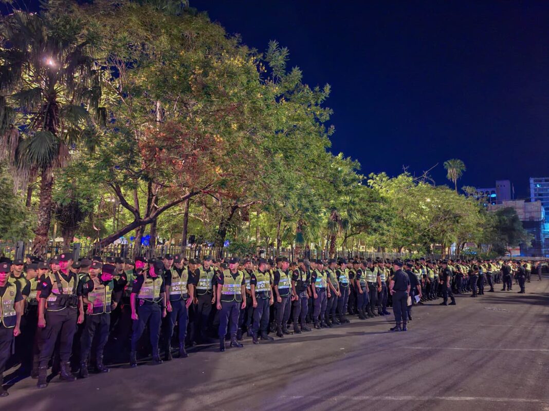 El operativo contempla la presencia de efectivos policiales a lo largo de todo el recorrido previsto de la marcha, así como en las inmediaciones de instituciones públicas ubicadas en la zona, priorizando el acompañamiento y la prevención.