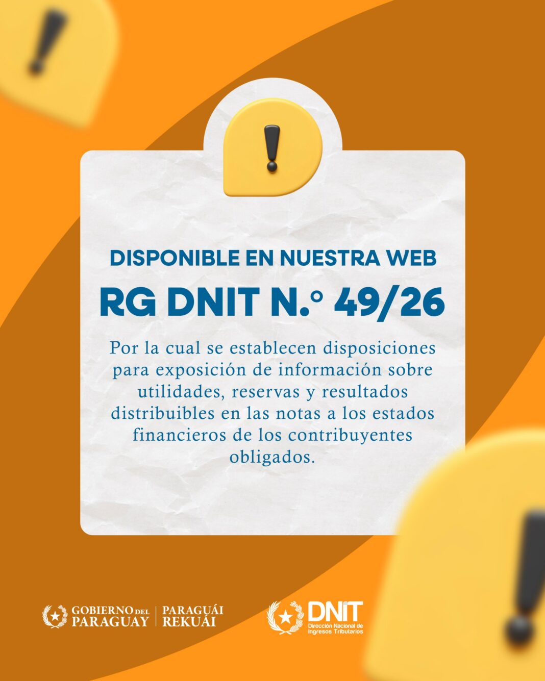 La Dirección Nacional de Ingresos Tributarios emitió la Resolución General N.º 49/2026, mediante la cual dispone que los contribuyentes del Impuesto a la Renta Empresarial (IRE), obligados a presentar Estados Financieros, informó este miércoles el gerente de Ingresos Internos de la DNIT, Ever Otazú.