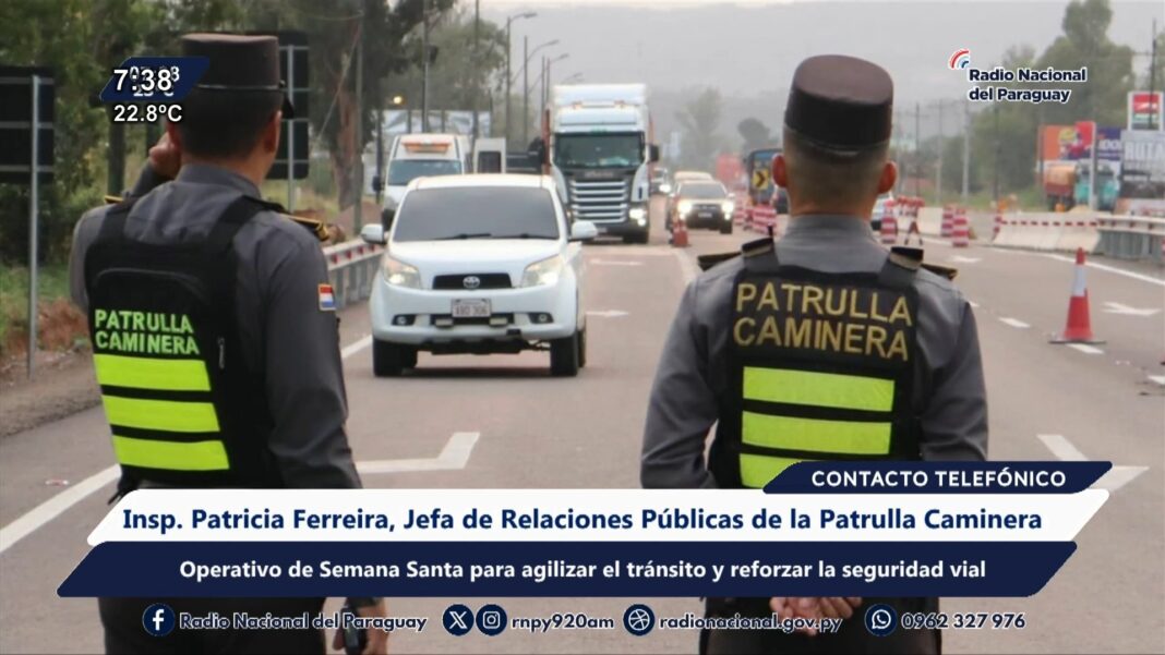 El Operativo Semana Santa, tiene por objetivo agilizar el tránsito y reforzar la seguridad vial, destacó este jueves la jefa de Relaciones Públicas de la Patrulla Caminera, inspectora Patricia Ferreira.