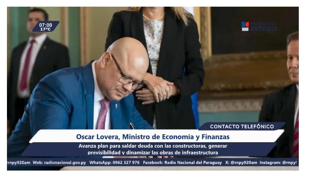 «Estamos trabajando el concepto de previsibilidad», destacó este viernes el ministro de Economía y Finanzas, Oscar Lovera al ser consultado en Radio Nacional del Paraguay, sobre los desafíos y prioridades al frente de la citada cartera institucional.