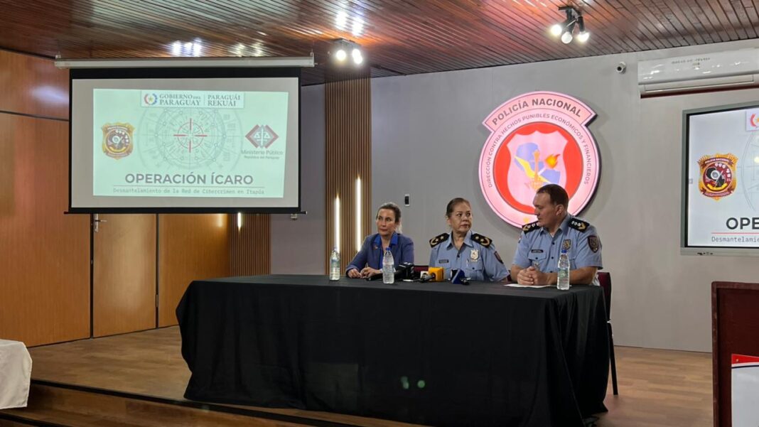 El jefe del departamento contra el Ciber Crimen, comisario principal Diosnel Alarcón y la Fiscal Irma Llano, de la unidad especializada contra delitos informáticos, brindaron una conferencia para dar a conocer los detalles y parte de los resultados de la Operación Ícaro.